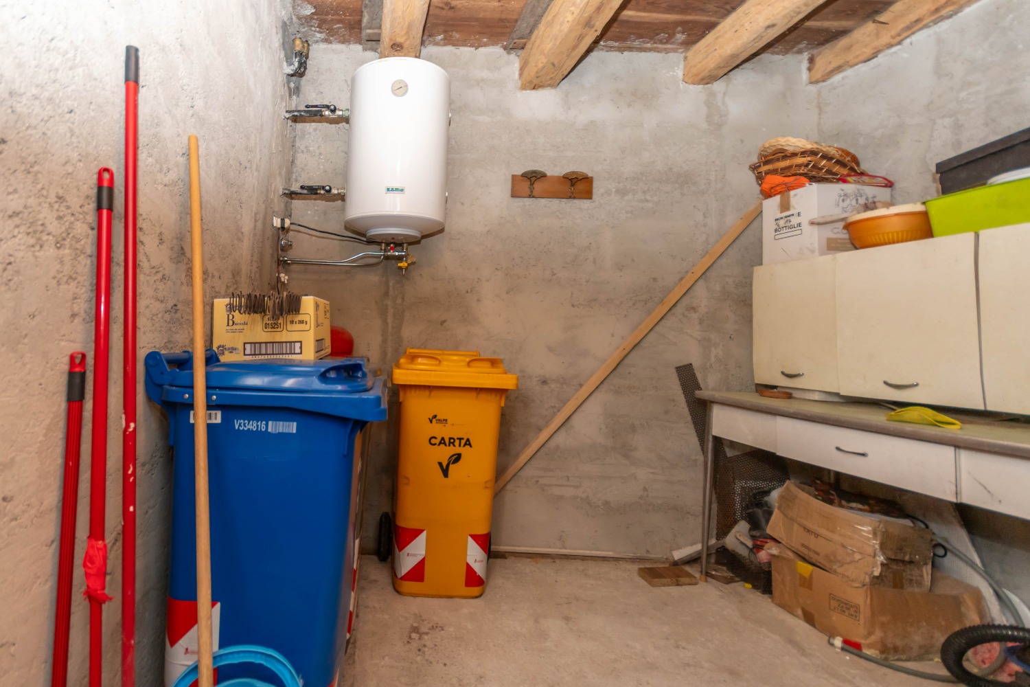 Ground floor: open-plan kitchen with dining area and access to the outside, practical cellar, and pellet stove connected to both the heating system and hot water supply;